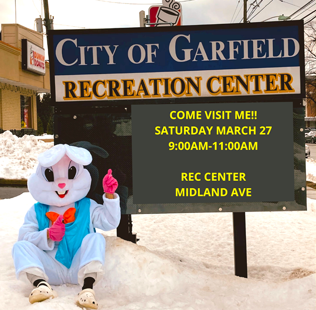 Posted February 12, 2021The City of Garfield invites you to Meet the Easter Bunny at our Drive-Thru Easter Bunny Egg and Basket Giveaway on Saturday, March 27, 2021 at the Recreation Center, 466 Midland Ave., from 9 to 11 a.m.